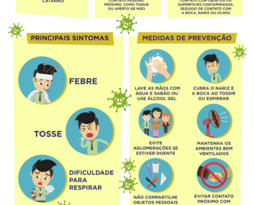 - Não ir ao trabalho quando apresentar algum sintoma relacionado, tais como febre ou tosses.